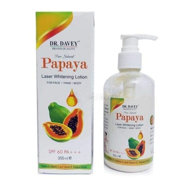 Dr Davey Papaya Laser Body Lotion – 350ml। পাপায়া এক্সট্র্যাক্ট দিয়ে তৈরি, যা ত্বকের উজ্জ্বলতা বৃদ্ধি করে, শুষ্কতা দূর করে এবং ত্বককে কোমল রাখে। এখনই কিনুন Shangallery.com-এ।